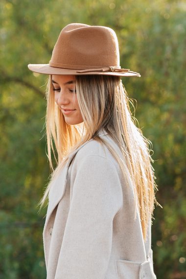 Tags: 100% wool felt cowboy hat with band, 100% wool felt western hat, 100% wool felt western hat with elastic band, brim size 2.25 inches, fedora, mayfair hat, one size fits most hat, peter grimm 100% wool felt western hat, tan color, unisex style, upf sun protection